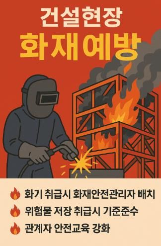 건설현장의 경우 용접·절단 작업 중 발생한 불티가 가연성 자재에 옮겨붙어 화재로 이어질 우려가 있다.