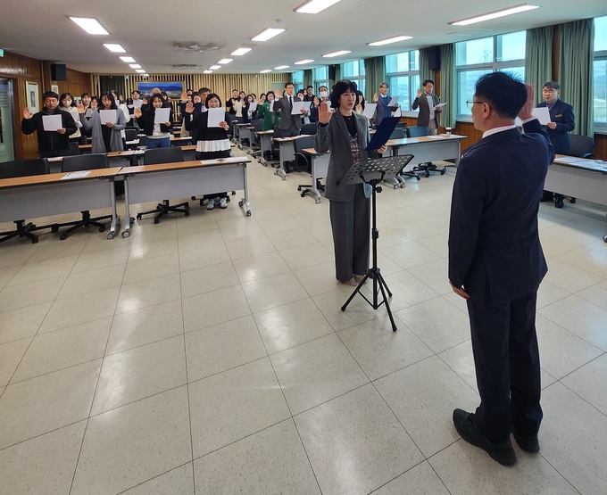 [경남도민뉴스=백형찬 기자] 경상남도거창교육지원청(교육장 신종규)은 2025년 4월 1일, 청렴한 공직문화를 정착시키기 위한 다양한 활동을 담은 '청렴의 날' 행사를 성공적으로 개최했다. 이 행사에서는 청렴실천다짐서약 선서를 비롯하여 교육장의 '청렴톡톡', 청렴 퀴즈, 칭찬 및 선행직원 선정, 그리고 부서원 간 소통의 시간이 마련됐다.