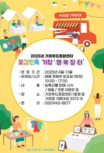 행사에서는 소규모 이벤트와 각종 할인 행사 등을 통해 거창군의 우수 농산물 및 가공품을 홍보하고 판매할 예정이다.