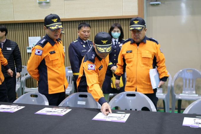 박성열 경북소방본부장은 안영호 김천소방서장, 김재광 김천시시설관리공단 이사장, 김영복 김천의용소방대남성연합회장, 이미숙 김천의용소방대여성연합회장 및 관계자들과 함께 개표소가 설치된 2층 체육관 내부를 비롯한 주요시설을 점검했다. 그는 소방시설 유지 및 관리실태를 확인하고, 화재발생 시 신속한 대응방안을 논의했으며, 비상구 등 피난시설이 적절히 관리되고 있는지 꼼꼼히 살펴봤다. 또한 관계자들에게 개표소 내 화재 안전관리를 철저히 해줄 것을 당부했다.
