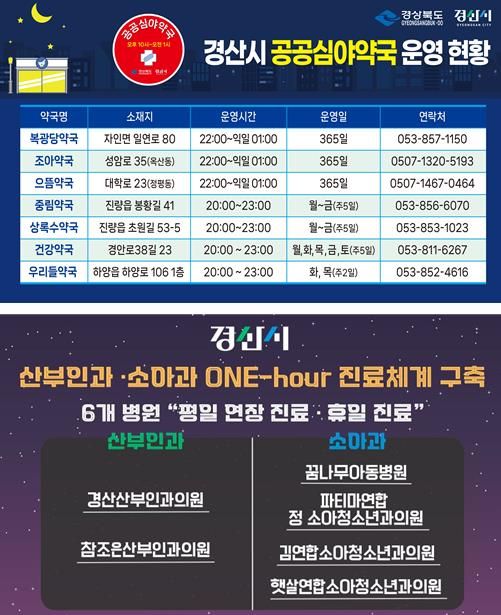 [경남도민뉴스=최민숙 기자] 경산시는 의료 취약 시간대에도 시민들이 안심하고 의료 서비스를 이용할 수 있도록 산부인과·소아청소년과 연장 진료체계를 확대하고, 공공심야약국 운영도 강화했다고 밝혔다.