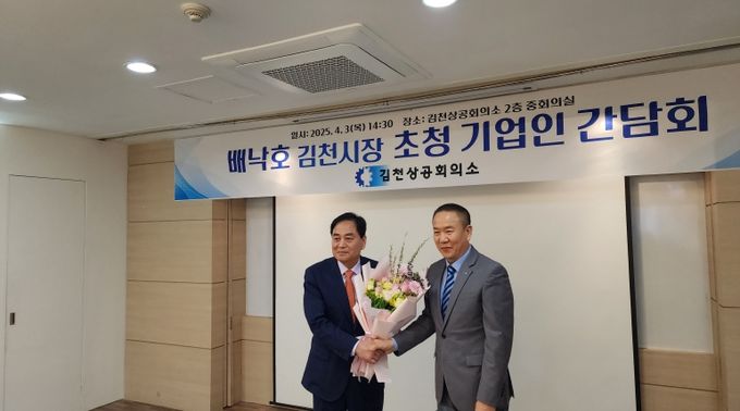 안용우 회장은 “당선을 축하드린다”며, “시정 운영에 무궁한 성과로 우리 김천이 더욱 발전했으면 한다”고 인사하고 “미국의 관세부과 등 큰 대내외 악재속 에도 고군분투하고 있는 기업들이 안정적인 사업을 할 수 있도록 다양한 지원과 적극적인 일자리 정책 요청, 우량기업 유치로 지역 경제 활력 제고를 요청드린다”고 말했다.