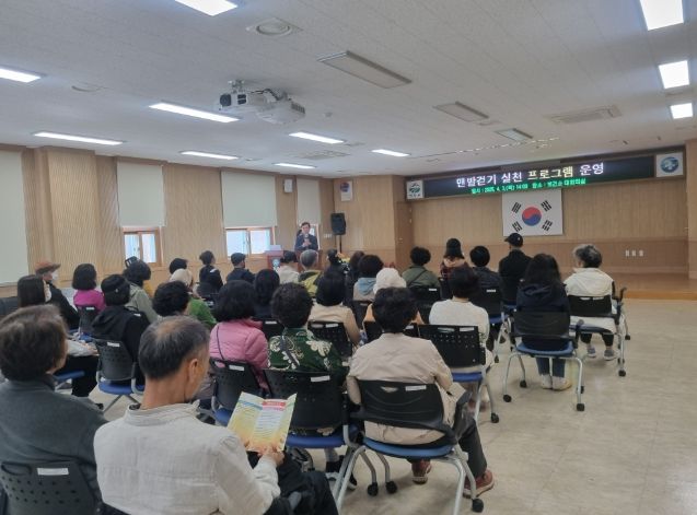 [경남도민뉴스=백형찬 기자] 거창군은 지난 3일 보건소 대회의실에서 참여자 40명이 참석한 가운데 ‘맨발걷기 실천 프로그램’의 첫 수업을 진행했다.