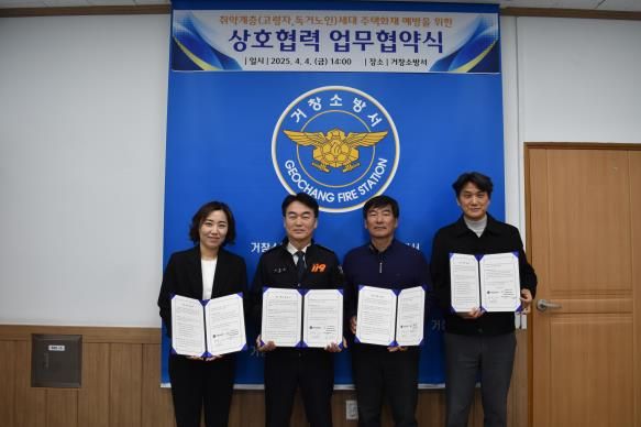 업무협약 기관은 거창소방서와 거창군 노인돌봄 수탁기관인 해월노인복지센터, 거창노인통합지원센터, 거창인애노인통합지원센터다.