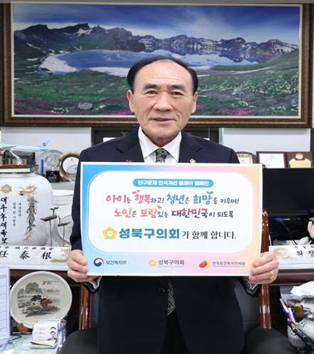 [경남도민뉴스=윤장희 기자] 서울 성북구의회는 지난 8일 임태근 의장이‘인구문제 인식개선 릴레이 캠페인’에 동참했다고 밝혔다.