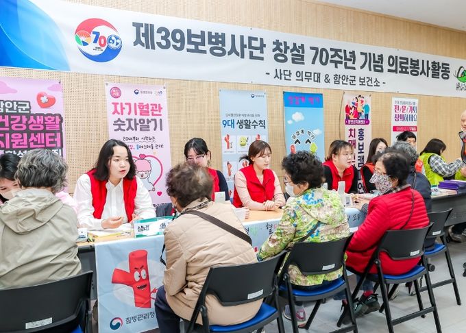 [경남도민뉴스=권중환 기자] 함안군보건소는 육군 39보병사단과 함께 군북면사무소 3층 회의실에서 의료봉사 활동과 건강홍보 부스를 운영했다고 밝혔다.