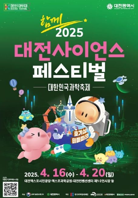 대전시는 과학기술정보통신부와 함께 4월 16일부터 20일까지 5일간‘2025 대한민국 과학기술축제’를 엑스포시민광장, 엑스포과학공원, 대전컨벤션센터 등 도심 일원에서 개최한다.