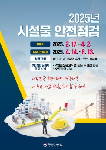 또한, ‘안전점검의 날’과 병행한 ‘우리집은 안전한가요?’ 민관합동 캠페인을 실시하고 다중이용시설 및 가정용 자율안전점검표를 배부하여 생활 속 자율 안전점검 실천 운동도 추진한다.