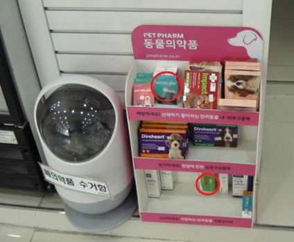 '다' 동물약국은 유효기한이 1년 6개월이 지난 동물용의약품을 판매 목적으로 동물용의약품 판매대에 저장·진열하다가 적발됐다.
