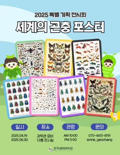 [경남도민뉴스=백형찬 기자] 거창천적생태과학관이 2025년 4월 19일부터 6월 30일까지 특별 기획전 ‘세계의 곤충 포스터’ 전시회를 개최한다.
