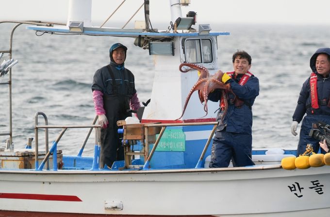 이후, 김 지사는 저도어장의 대표 어종인 대문어를 잡기 위해 어민 배에 직접 올라 일일 어부 활동에 나섰다.