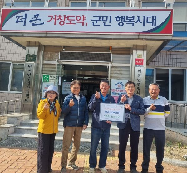[경남도민뉴스=백형찬 기자] 거창군 위천면은 지난 16일 위천면 남산마을에서 산불 피해로 어려움을 겪는 이웃을 위해 써 달라며 성금 200만 원을 기부했다고 밝혔다.