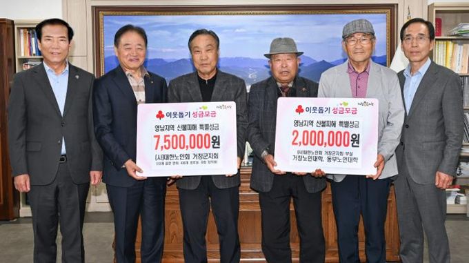 지난 11일, 대한노인회 경남연합회를 통해 550만 원을 전달하고, 이어서 18일 거창군지회에서 200만 원, 거창노인대학과 동부노인대학에서 각각 100만 원씩을 추가로 모금해 기탁했다.