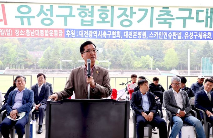 [경남도민뉴스=도문호 기자] 대전시의회 조원휘 의장은 20일 충남대학교 종합운동장에서 개최된 제7회 유성구협회장기 축구대회에 참석해 사고 없는 안전한 대회 진행을 기원하며 건강한 생활체육 문화 조성을 위한 지원을 약속했다.