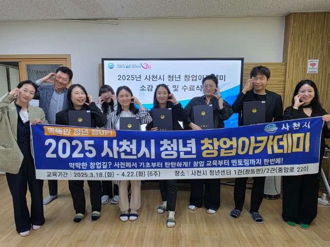 [경남도민뉴스=변정형 기자] 사천시는 사천시 청년센터에서 ‘2025년 사천시 청년 창업아카데미’ 교육과정을 통하여 예비 및 초기 청년 창업가 6명이 성공적으로 교육을 마쳤다고 22일 밝혔다.