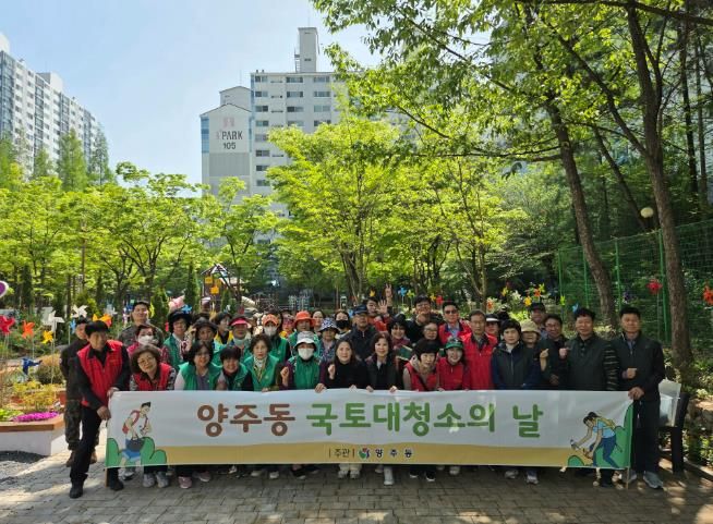양주동 행정복지센터에서는 지역 주민, 기관사회단체와 협력하여 황산어린이공원에서 국토대청소를 실시했다.
