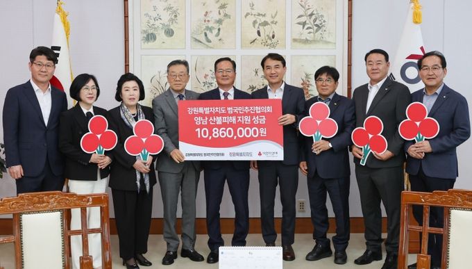 이번 성금은 강원특별자치도 범국민추진협의회 위원 440여 명이 대형 산불로 삶의 터전을 잃은 영남지역 피해 주민들을 돕기 위한 것으로, 강원사회복지공동모금회를 통해 피해 주민의 생계 지원과 복구 활동 등에 사용될 예정이다.