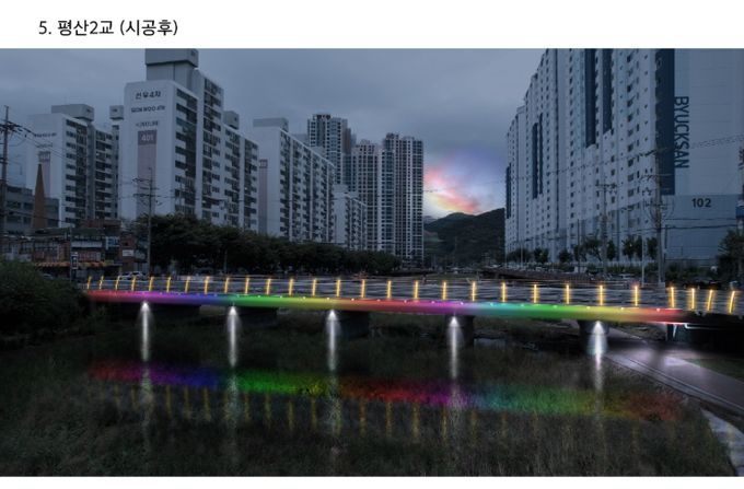 교량 측면부에는 조명시설을 설치하여 조도를 개선할 것이며, 교량의 전체적인 야간 경관도 연출할 계획으로 야간에 어두운 교량하부 공간을 밝은 공간으로 탈바꿈 시킬 계획이다.