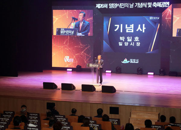 [경남도민뉴스] 밀양시(시장 박일호)는 18일 밀양아리랑아트센터에서 국제와이즈멘 밀양클럽(회장 김종대) 주관으로 제26회 밀양시민의 날 기념식 및 축하공연을 성황리에 개최했다.