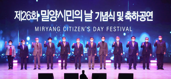 이날 기념식 및 축하공연은 코로나19 및 단계적 일상회복 등을 고려해 현장에는 역대 시민대상 수상자, 코로나19 유공자, 지역 내 기관단체장 등으로 참석내빈을 축소하고, 밀양시 공식 유튜브 채널에서 실시간 생중계를 통해 밀양 시민과 함께했다.