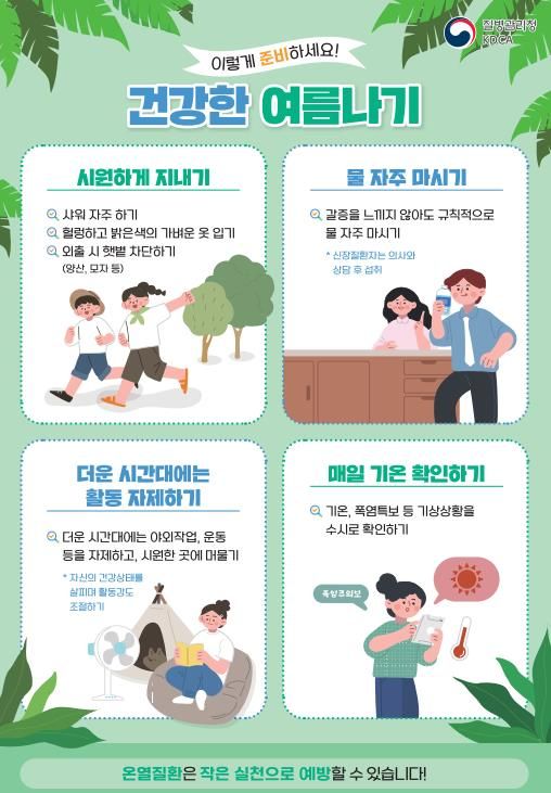 군은 온열질환 예방을 위해 ▲외출 시 모자나 양산으로 햇볕 차단 ▲수시로 물 마시기 ▲더운 시간대에는 외부 활동 자제 ▲기상 상황 수시 확인 등의 폭염 대응 건강수칙 준수를 당부했다.