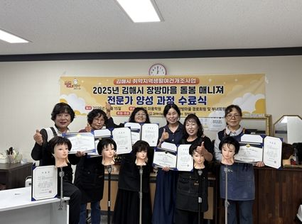 [경남도민뉴스=최미정 기자] 김해시는 한림면 장방마을이 마을 돌봄 매니저 양성 교육의 하나로 추진한 ‘미용 전문가 양성 교육’ 수료식을 개최했다고 16일 밝혔다.