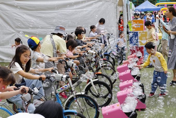 폐플라스틱 뚜껑으로 만드는 열쇠고리, 친환경 모기기피제 등 다양한 업사이클링 체험도 진행됐다. 에어바운스, 야구, 농구 등을 즐길 수 있는 놀이 프로그램도 마련됐다.