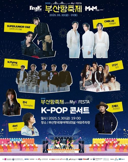 국내 최정상급 케이팝(K-POP) 스타들이 출연하는 콘서트는 축제 개막일인 5월 30일 오후 7시 부산항국제여객터미널 야외 특설무대에서 열린다.