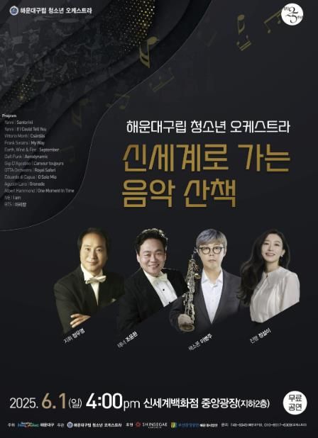 정우영 지휘자는 “신세계로 가는 음악 산책은 해운대 청소년들의 성장을 나누는 뜻깊은 시간”이라며, “클래식과 대중음악이 어우러진 음악회에 많은 관심을 바란다”고 전했다.