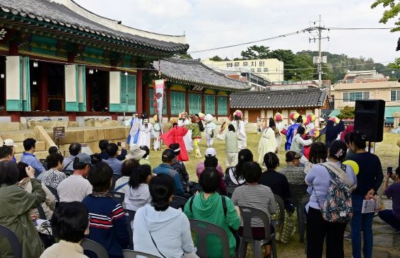 '무형유산 가족 나들이'는 동래학춤(부산시 무형유산)과 동래야류(국가 무형유산)를 가족과 함께 직접 배우고, 달(불)빛 아래에서 소풍처럼 여유 있게 차를 마시는 체험 교육 프로그램이다.