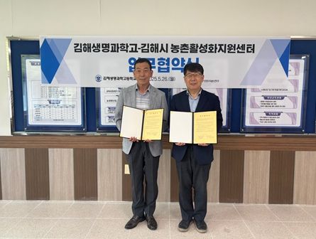 [경남도민뉴스=최미정 기자] 김해시농촌활성화지원센터와 김해생명과학고등학교가 청소년의 다양한 진로 탐색 기회 제공을 위한 업무협약(MOU)을 체결했다고 27일 밝혔다.