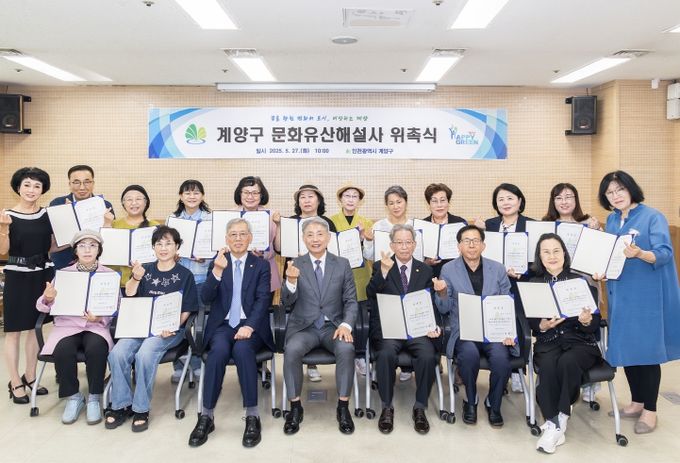 이번 위촉은 ‘문화유산’ 및 ‘계양학 마을길’ 해설을 위한 체계적인 교육과 해설 시연 평가를 거쳐 이뤄졌으며, 구는 이 과정에서 우수한 성과를 거둔 17명을 문화유산해설사로 최종 선발했다.