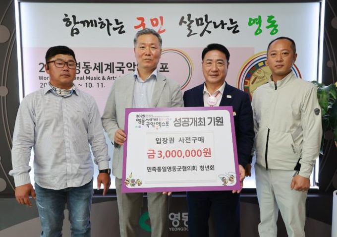 [경남도민뉴스=박만수 기자] 민족통일 영동군청년회는 ‘2025영동세계국악엑스포’의 성공개최를 기원하며 28일 영동군청에서 입장권 구매를 약정했다.