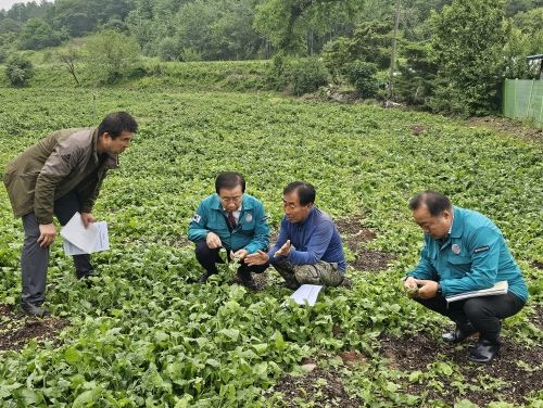 이번 기상이변으로 인해 ▲사과 3ha ▲수박 6ha ▲곤드레 3ha ▲기타 작물 1ha 등 총 13ha 규모의 농경지가 피해를 입은 것으로 잠정 파악됐다.