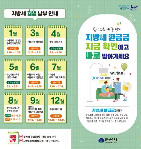 [경남도민뉴스= 기자] 군산시가 납세자 중심의 편리한 세정 서비스를 확대하기 위하여 ‘지방세 환급금 확인 및 신청 방법’ 홍보를 추진한다고 9일 밝혔다