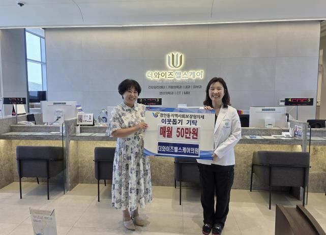이번 정기후원은 지역사회에 대한 감사와 보답의 의미로 추진된 것으로 더와이즈헬스케어의원은 그동안 ▲2024년 경안동 바자회 100만 원 기부 ▲경안동 동민의 날 종합건강검진권 2매 기부 ▲2024~2025년 취약계층 의료비 지원사업 참여 등 다양한 사회공헌 활동을 이어오고 있다.