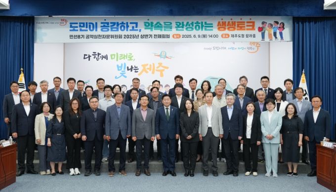 [경남도민뉴스=하형수 기자] 제주특별자치도는 9일 오후 도청 탐라홀에서 ‘도민이 공감하고 약속을 완성하는 생생토크’ 민선8기 공약실천자문위원회 2025년 상반기 전체회의를 개최했다고 밝혔다.