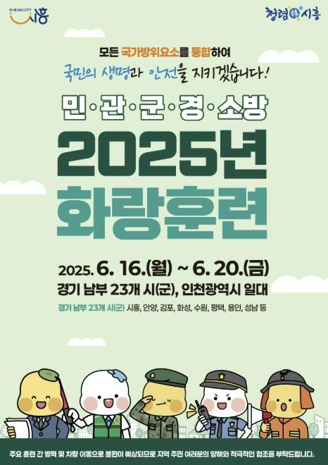 [경남도민뉴스= 기자] 시흥시는 오는 6월 16일부터 20일까지 시흥시 전역에서 ‘2025년 화랑훈련’을 실시한다.