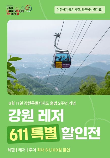 [경남도민뉴스= 기자] 강원특별자치도와 강원관광재단18개 시군은 ‘강원 관광 숙박 대전’의 일환으로, 강원특별자치도 출범 2주년을 기념한 특별 프로모션‘6·11 레저 할인 이벤트’를 오는 6월 11일부터 16일까지 6일간 진행한다고 밝혔다.