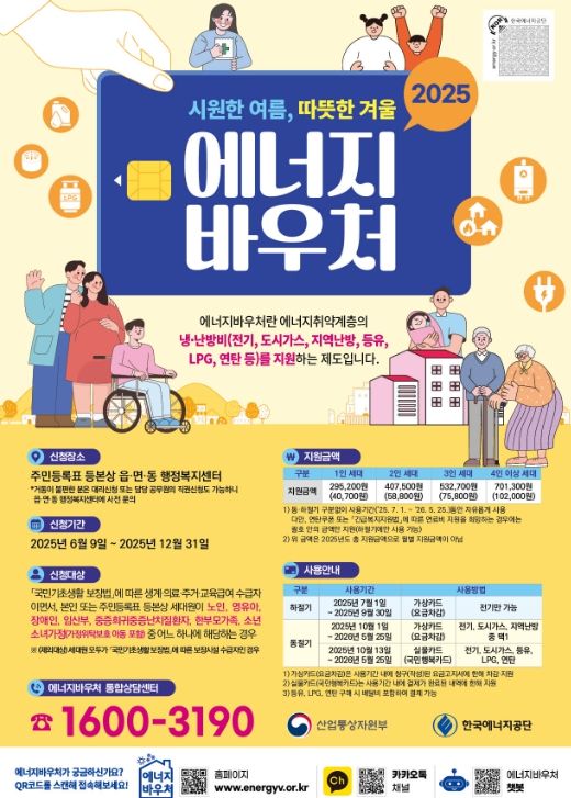 지원 금액은 세대원 수에 따라 차등 지원되며, 하·동절기 합산 1인 세대 295,200원부터 4인 이상 세대 701,300원이다.