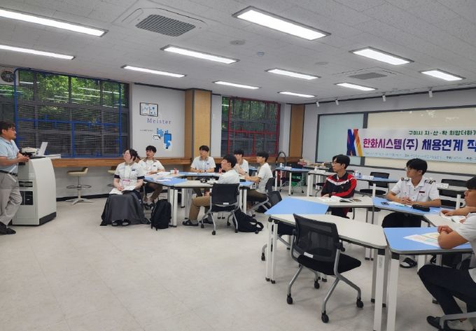 이번 1기 참여자는 구미전자공고와 금오공고 3학년 재학생 10명으로, 구미를 대표하는 방위산업체인 한화시스템의 1차 전형을 통과해 6월 4일부터 직무교육을 시작했다.