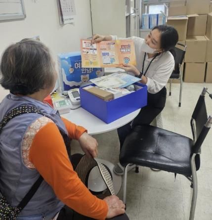 구리시보건소 방문 건강관리 전문 인력은 무더위에 상대적으로 취약한 취약계층 홀로 어르신과 만성질환자 등을 방문하여 대상자의 안부와 건강 상태를 확인하고, 전국재해구호협회가 후원한 폭염 대응 구호물품 100개를 배부한다.