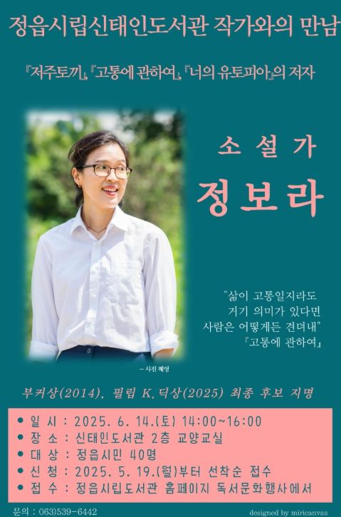 [경남도민뉴스= 기자] 부커상 후보로 세계적 주목을 받은 소설가 정보라가 정읍을 찾아 시민들과 문학 속 환상의 세계를 나눈다.