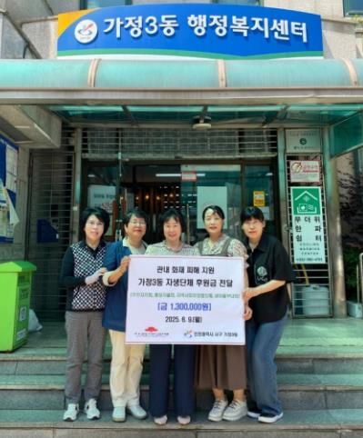 [경남도민뉴스= 기자] 인천 서구 가정3동 행정복지센터는 관내 자생단체들이 지난 3월 발생한 빌라 화재 피해 주민들을 돕기 위해 자발적으로 모금한 후원금 130만 원을 전달했다고 10일 밝혔다.