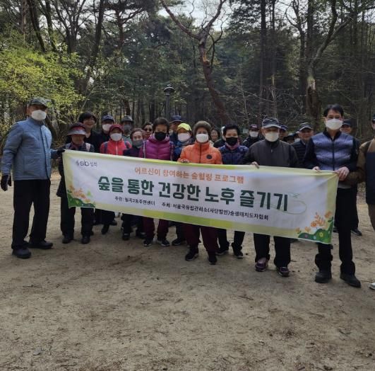 [경남도민뉴스= 기자] 서울 성북구 월곡2동이 지난 6월 5일 관내 65세 이상 어르신 30명을 대상으로 삼태기 도시숲 공원에서 숲체험 프로그램을 열었다. 이번 행사는 숲해설가와 함께 명상, 솔방울 불기, 지팡이 잡기 놀이 등 다양한 자연체험 활동으로 어르신들의 신체적·정서적 건강 증진과 사회적 유대감 형성을 목적으로 진행됐다.