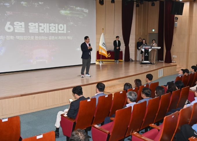 [경남도민뉴스= 기자] 하남시는 6월 10일 시청 대강당에서 6월 월례회의를 개최하고 상반기 주요 시정 성과를 공유하며 하반기 계획에 대한 철저한 준비를 당부했다.