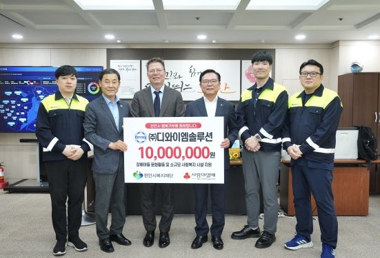 [경남도민뉴스= 기자] ㈜천안시복지재단(이사장 이운형)은 10일 ㈜디와이엠솔루션(대표 얀 로저 칼슨)이 천안시청 부시장실에서 후원금 1,000만 원을 기탁했다고 밝혔다.