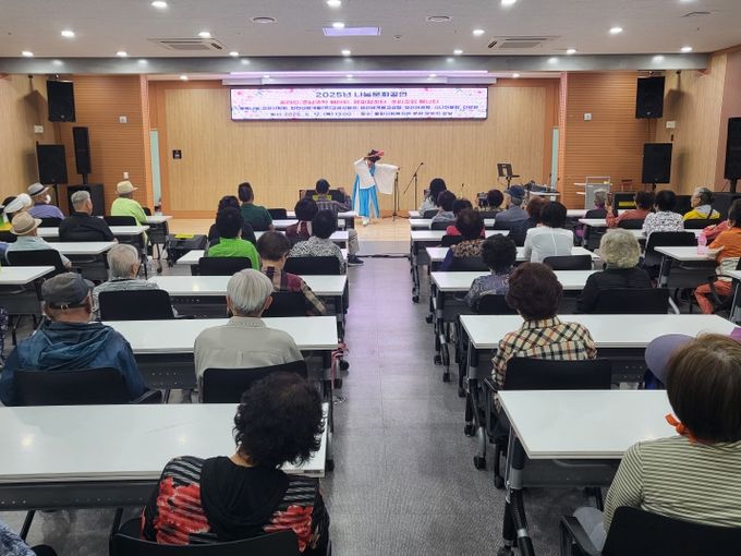 [경남도민뉴스=김태수 기자] 고성군에서 운영 중인 고성군종합사회복지관에서는 6월 12일 종합사회복지관 분관 모두의 강당에서 공공실버주택 입주 어르신과 지역 취약계층 주민 80여 명을 대상으로 ‘2025 나눔문화공연 – 얼쑤! 이웃 사랑 한마당’ 행사를 성황리에 개최했다.