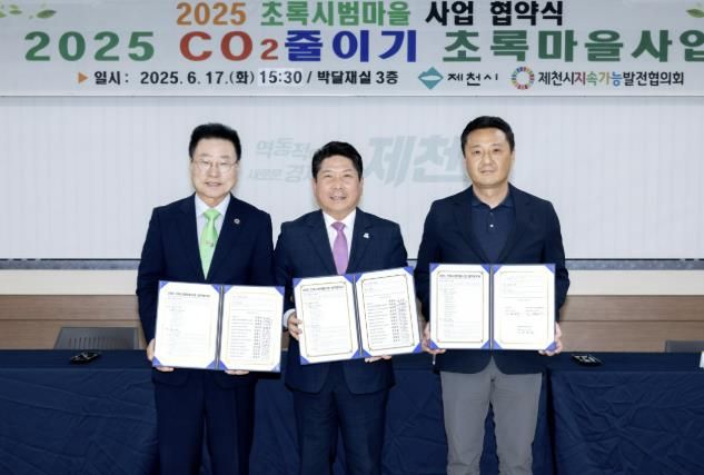 [경남도민뉴스=박만수 기자] 제천시와 제천시지속가능발전협의회가 주관하는 기후변화 대응 공동주택 초록시범마을 협약식이 지난 17일 제천시청 박달재실에서 개최됐다.
