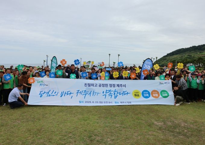 [경남도민뉴스=하형수 기자] 제주시는 여름철 관광 성수기와 해수욕장 개장을 맞아 6월 22일 오전 9시 함덕해수욕장 일원에서 ‘친절하고 공정한 청정 제주시’ 캠페인을 전개했다.